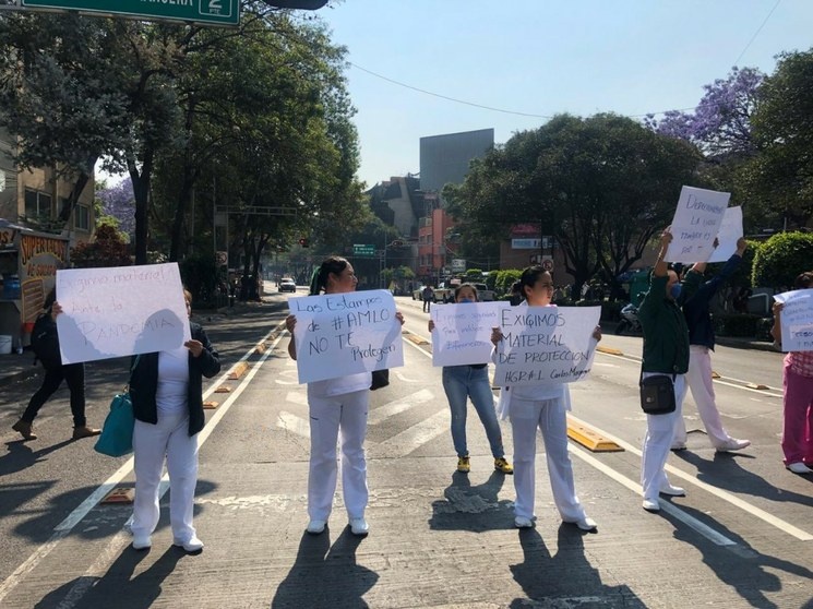 En una manifestación realizada afuera del IMSS, expuso que la pandemia ha ejercido niveles extraordinarios de estrés psicológico sobre el personal de salud y mencionó que según datos de la Organización Mundial de la Salud (OMS) uno de cada cuatro están sufriendo depresión y ansiedad y uno de cada tres insomnio.