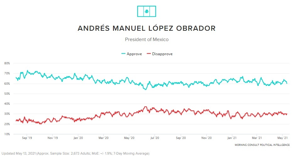 Al dar a conocer una encuesta sobre el desempeño de los principales mandatarios del mundo, el presidente Andrés Manuel López Obrador indicó que va en primer lugar, con 60 por ciento de aprobación y 30 por ciento de desaprobación entre los ciudadanos.