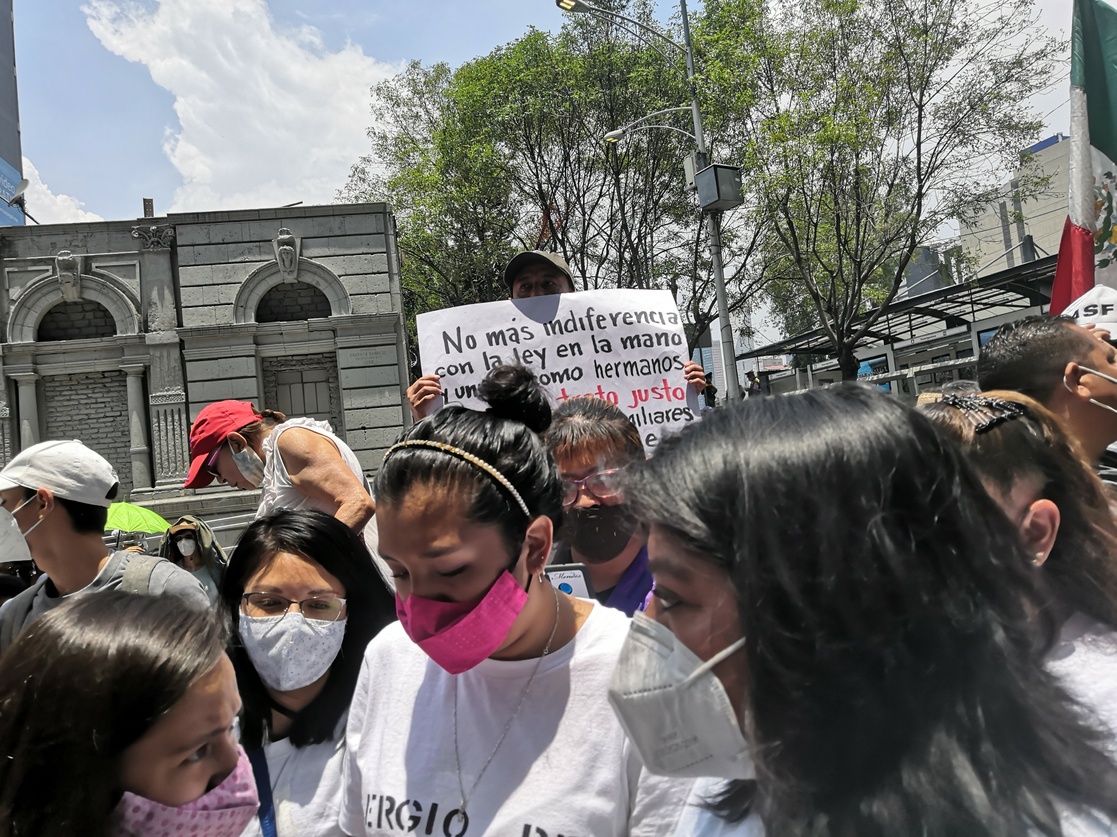 "Justicia para Sergio, Susana, Nancy, Giovanni, Alejandro", "no fue accidente fue negligencia", corearon los familiares quienes exigen ser atendidos pues señalaron que "no es un favor sino una obligación".