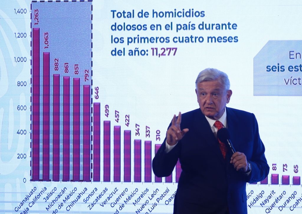 Aunque durante la presente administración “se ha contenido la tendencia a la alza del homicidio doloso”, persiste incremento en algunos municipios como León, Guanajuato; Cajeme, Sonora; Guadalajara, Jalisco; Acapulco, Guerrero; Chihuahua, Chihuahua, con alza de 17.3 por ciento en el primer cuatrimestre del año en curso respecto al mismo periodo de 2020.