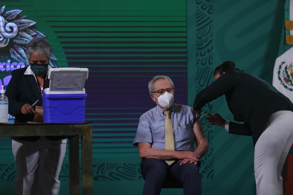 Durante la conferencia de prensa matutina en Palacio Nacional de este martes, el secretario de Salud, Jorge Alcocer, recibió la segunda dosis de la vacuna contra Covid-19 de la farmacéutica AstraZeneca.