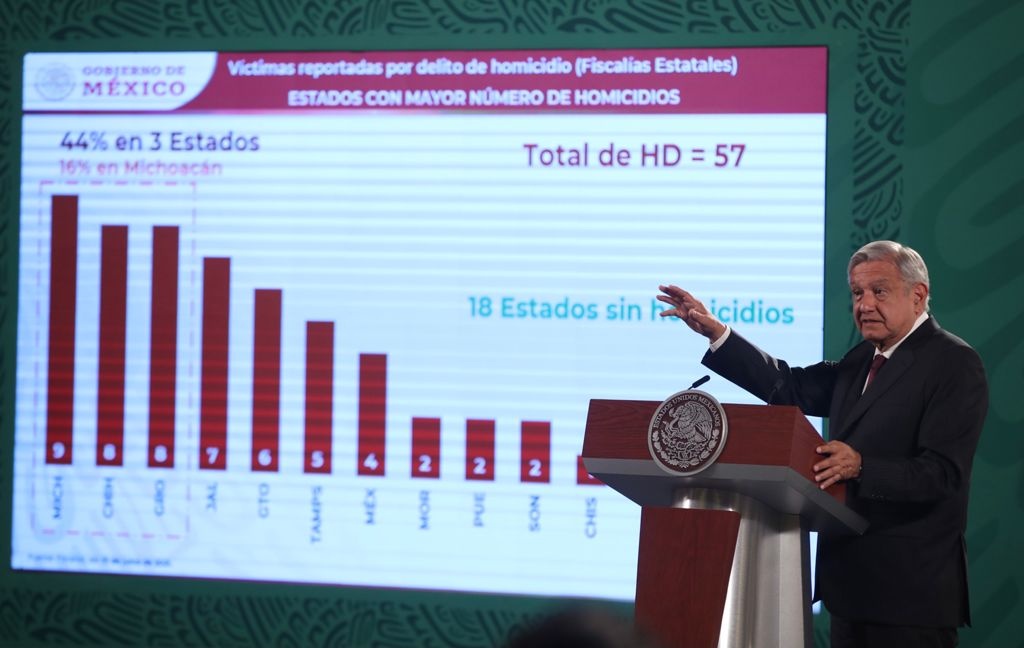 En el reporte gubernamental del martes se indica que 18 entidades reportaron asesinatos dolosos, es decir, no hubo crímenes de ese tipo en 14.