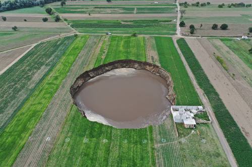 Apenas este jueves, el Cenapred reportó la ampliación de la oquedad a casi 90 metros de diámetro y 20 metros de profundidad, que tiene una superficie de 4 mil 862 metros cuadrados y un volumen superior a los 72 mil 930 metros cúbicos de agua.