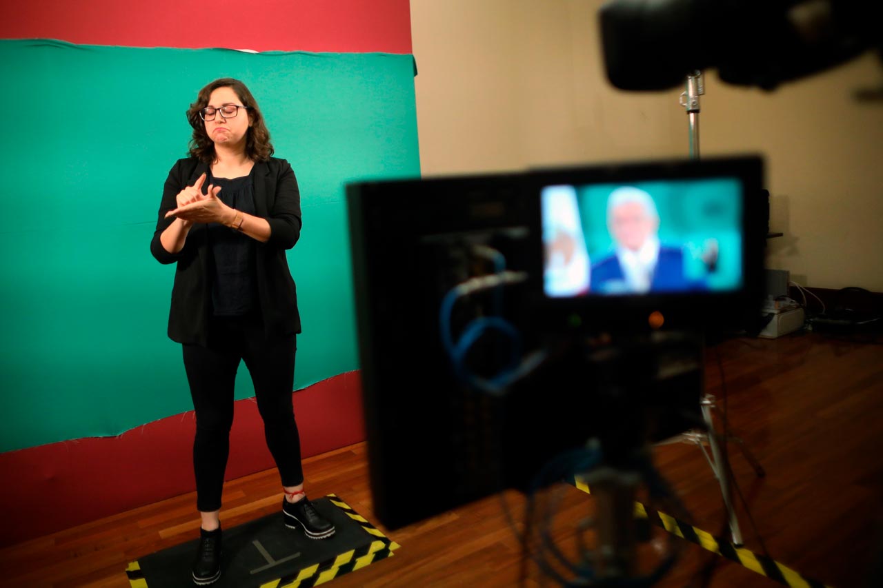 "Esto es histórico, tanto las conferencias de un presidente de todos los días como que haya un intérprete", opina mientras su compañera Vanessa la traduce en señas.
