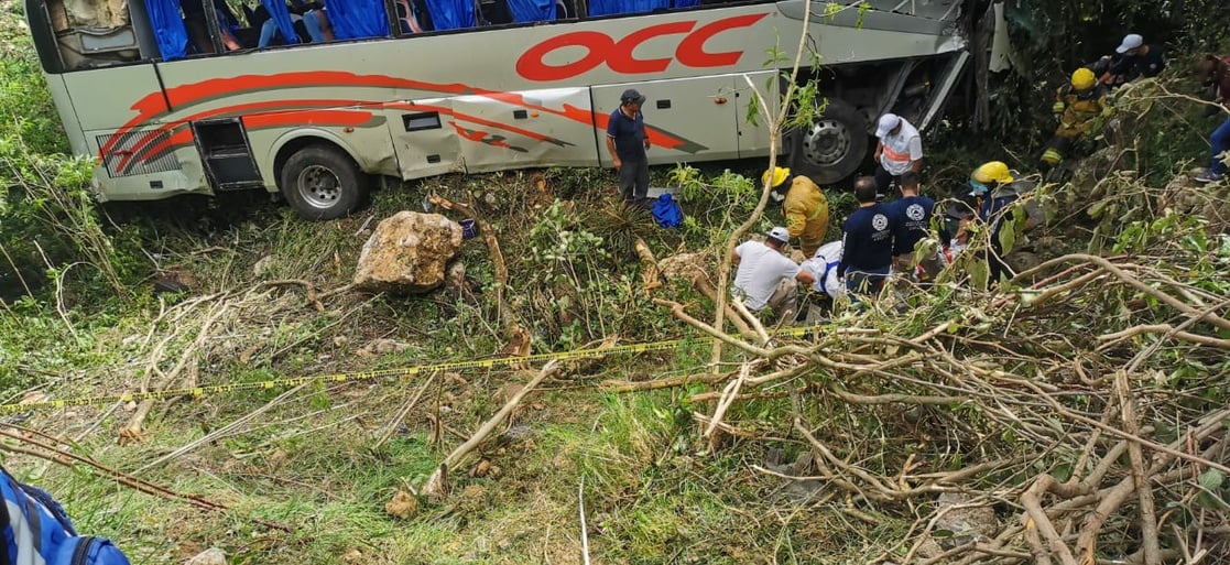 De acuerdo con reportes de corporaciones policíacas, en el kilómetro 165 + 500, una unidad de la OCC se impactó contra un automóvil particular y provocó que el autobús perdiera el control y cayera a un barranco, sin que se dieran a conocer las causas.