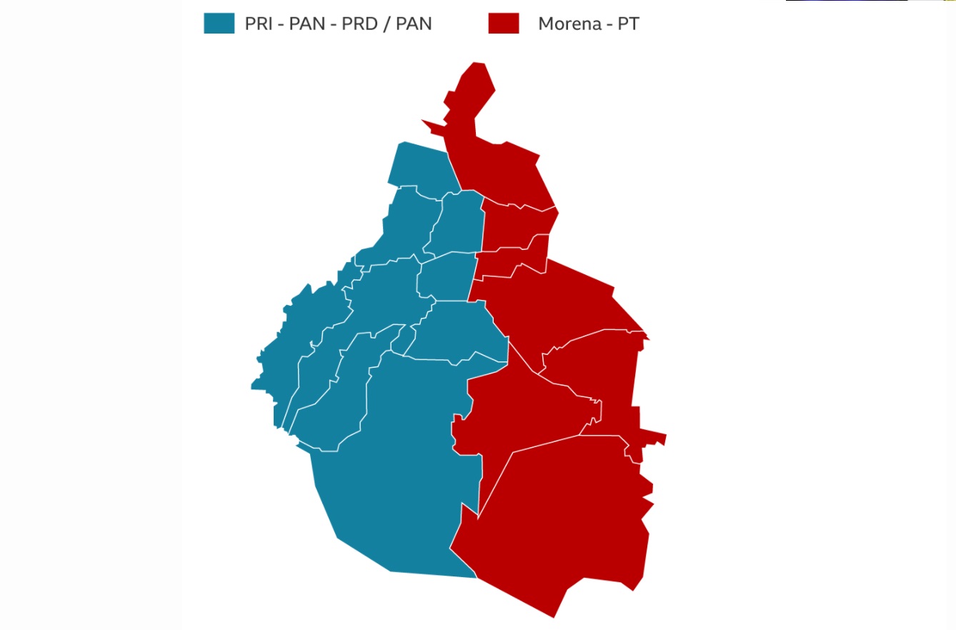 “Cuando uno ve este mapa, vemos que quedó una conformación muy curiosa y hasta cierto punto polémica, que ha dado lugar a muchos memes, pero el territorio funciona de otra manera. No hay que verlo sólo por alcaldías, sino por colonias o manzanas, porque la gran mayoría de las alcaldías, o casi todas, tienen preferencias tanto por Morena como por la alianza opositora”, puntualizó.