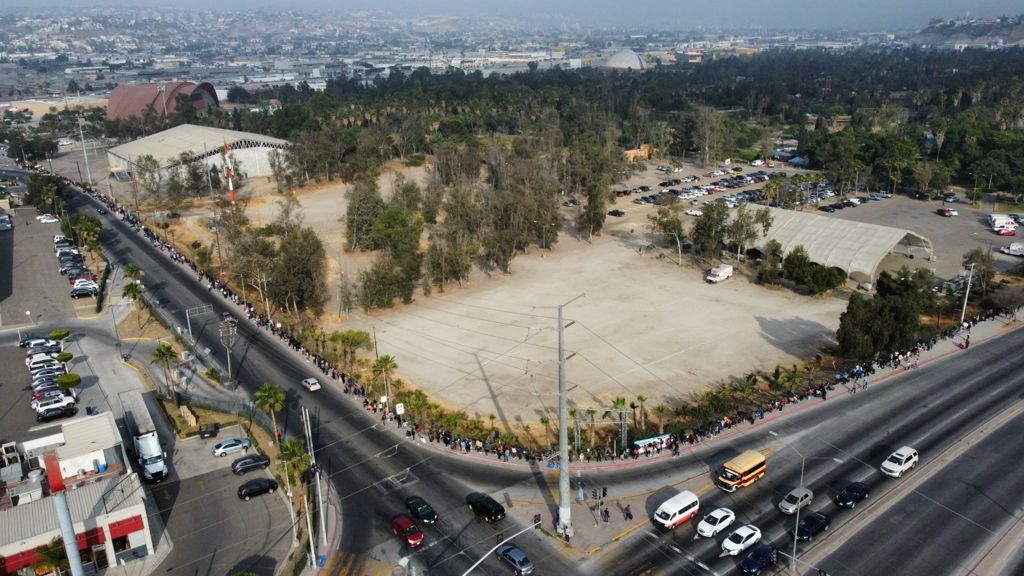 Cientos de bajacalifornianos mayores de 18 años hicieron largas filas desde la noche del miércoles para recibir una dosis del millón 350 mil vacunas de Johnson & Johnson, destinadas a la población fronteriza.