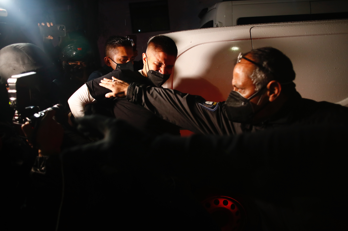 A las 20:54 el hombre subió a la camioneta de los agentes de la Policía de Investigación de la FGJ que cumplieron con la orden de aprehensión en su contra.