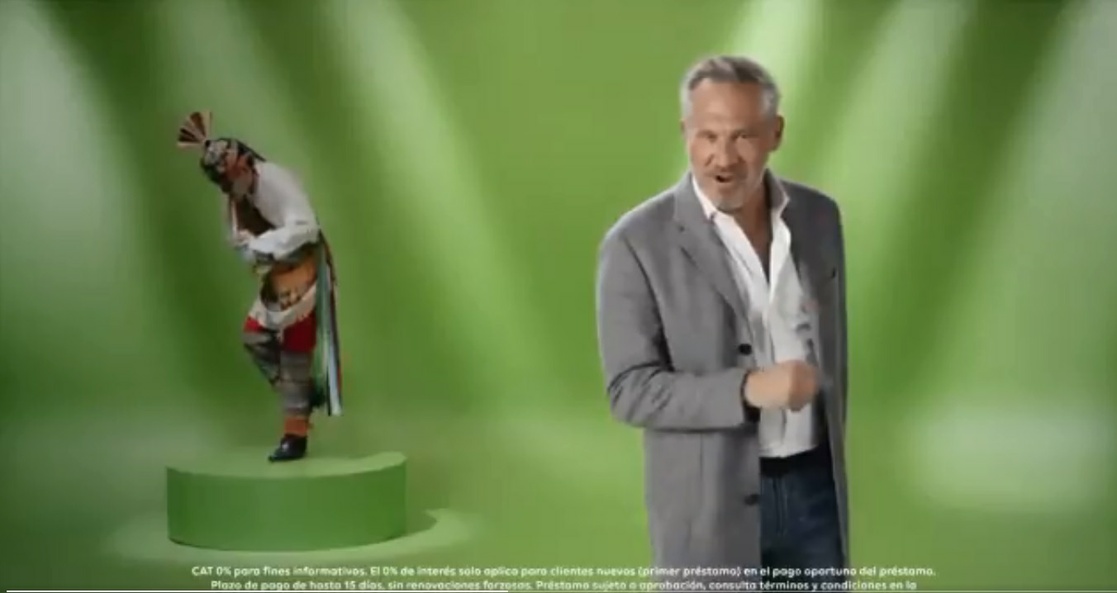 En el video en cuestión, De la Torre dice “¿sabes qué tienen en común el número de vueltas que dan los Voladores de Papantla y tu primer préstamo con Moneyman? Que ambos te generan cero interés”.