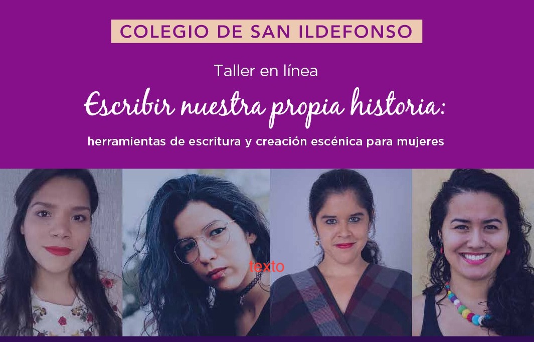 El Colegio de San Ildefonso en colaboración con la colectiva MEDEAS. Red de Jóvenes Investigadoras de la Escena, invitan al público a participar en el taller Escribir nuestra propia historia: Herramientas de escritura y creación escénica para mujeres, los días 8, 15, 22 y 29 de julio 2021, a las 18 horas, a través de la plataforma Zoom.
