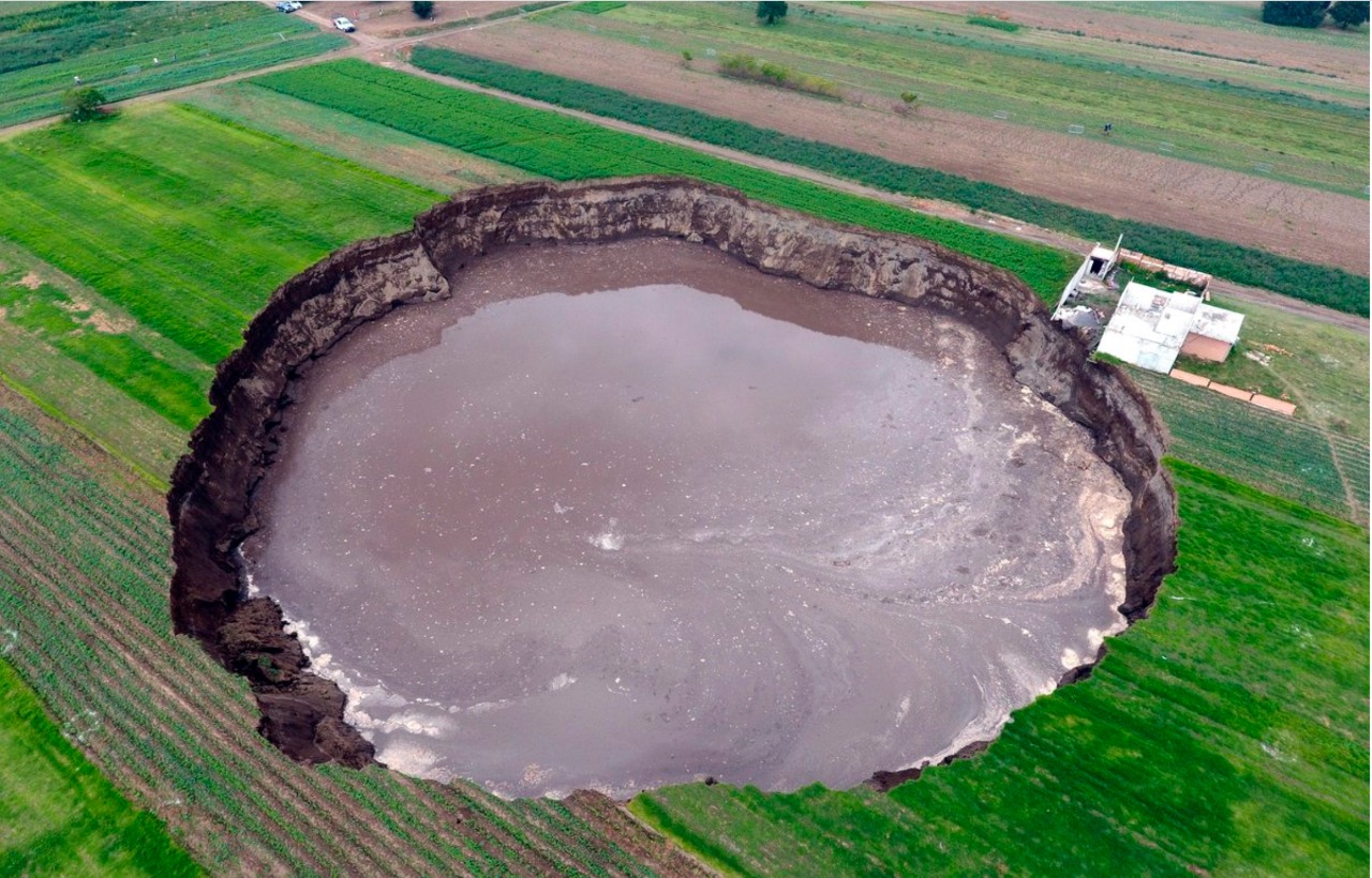 En resumen, todos estos procesos que causan la erosión del subsuelo agrícola se combinaron y ocasionaron la oquedad que mide más de 120 metros de diámetro.
