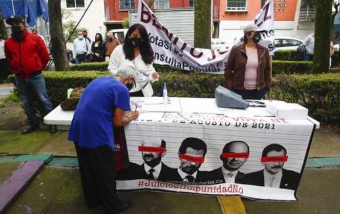 La mujer adelantó que dará “el sí al juicio contra los ex presidentes por todo lo que se han robado, pero más Peña Nieto, bueno también Salinas, con él empezaron los males; ahora me parece que ninguno de ellos vive en el país. Esperamos que gane el sí y que haya justicia”.