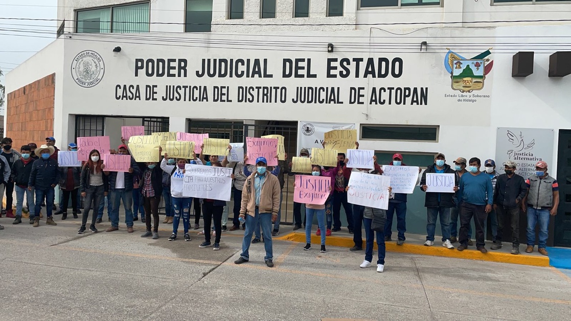 A temprana hora, tanto familiares de las víctimas como pobladores de la localidad de Vicente Guerrero se manifestaron en las afueras del juzgado de Actopan en demanda de cárcel para el regidor.