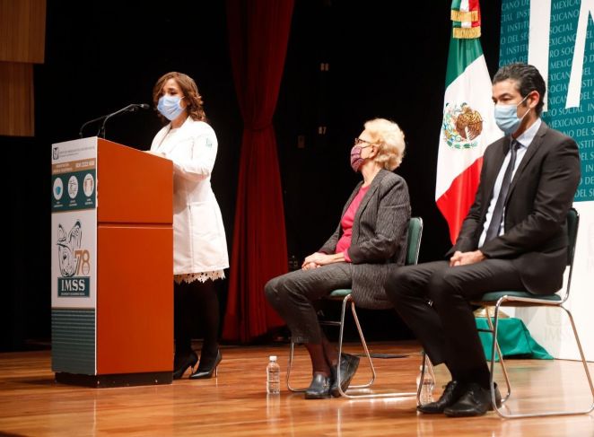 Al acto inaugural de este foro también acudieron la directora de Planeación y Enlace Institucional, Asa Cristina Laurell, y el secretario general IMSS, Marcos Bucio Mújica.