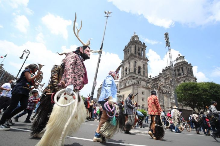 La manifestación fue pacífica, con música y danzas tradicionales que animaron a turistas y habitantes de la capital mexicana.