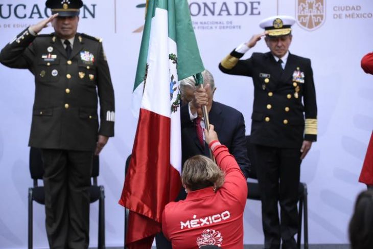La delegación deportiva que representará a México en los próximos Juegos Paralímpicos de Tokio 2020 fue abanderada por el presidente Andrés Manuel López Obrador en Palacio Nacional. Los escoltas del grupo serán Amalia Pérez y Edgar Barajas, a quien el presidente entregó el lábaro patrio.