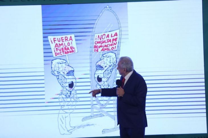 “Ayer otra vez, los opositores, la reacción conservadora, (Miguel Ángel Osorio) Chong, (Josefina) Vazquez Mota, Salinas de Gortari que todavía sigue mandando se opusieron que haya un periodo extraordinario para la ley de revocación de mandato.