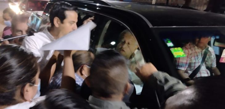 El presidente llegó poco antes de las seis de la mañana para acudir a su reunión de seguridad diaria, pero a la entrada ya había cientos de manifestantes que impidieron el paso de la camioneta en la que viajaba.