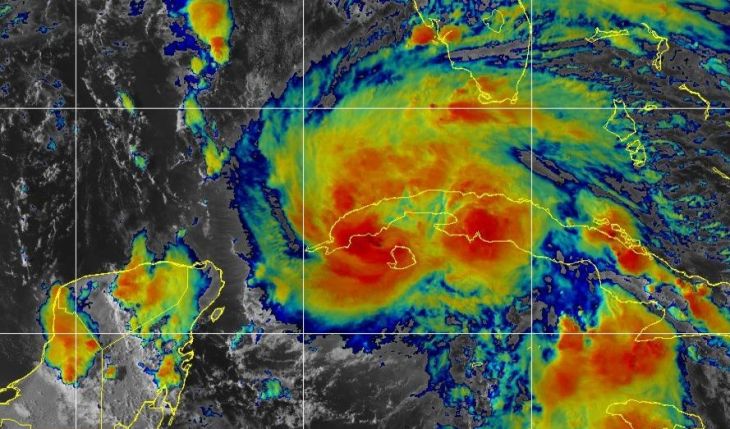 El meteoro presenta vientos máximos sostenidos de 130 km/h, rachas de hasta 155 k/h y desplazamiento hacia el noroeste a 24 k/h.