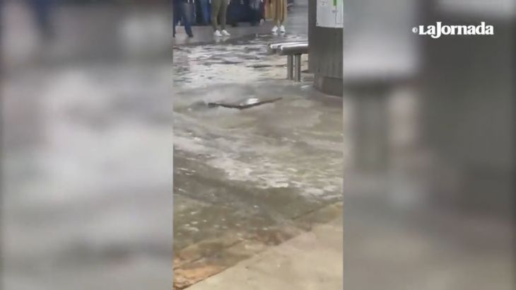 En otro de los videos se observa que de otro registro sale agua en una de las áreas de bandas utilizadas para la entrega de equipaje de los viajeros. Lo anterior sin que se aprecie a personal para limitar el paso.
