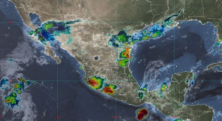 Para este miércoles, el frente frío número 1 se extenderá desde el noreste del Golfo de México hasta el oriente de la República Mexicana, y en interacción con un canal de baja presión sobre el sureste del país ocasionará lluvias intensas (de 75 a 150 milímetros) en Campeche, Chiapas, Hidalgo, Puebla, Querétaro, San Luis Potosí, Tabasco, Tamaulipas y Veracruz; muy fuertes (de 50 a 75 milímetros ) en Oaxaca, Quintana Roo y Yucatán; fuertes (de 25 a 50 milímetros) en Colima, Guanajuato, Jalisco, Michoacán, Nuevo León, Tlaxcala y Zacatecas; chubascos (de cinco a 25 milímetros) en Baja California Sur, Ciudad de México, Chihuahua, Coahuila, Durango, Estado de México, Guerrero, Morelos y Nayarit, y lluvias aisladas (de 0.1 a cinco milímetros) en Aguascalientes, Baja California, Sinaloa y Sonora, informó el Servicio Meteorológico Nacional (SMN).