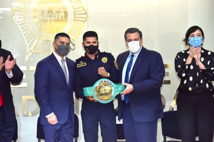 El Alacrán fue reconocido por Omar García Harfuch, titular de la SSCCDMX, y por Mauricio Sulaimán Saldívar, presidente del Consejo Mundial de Boxeo, quienes le entregaron el cinturón que reconoce su triunfo como el mejor de Latinoamérica.