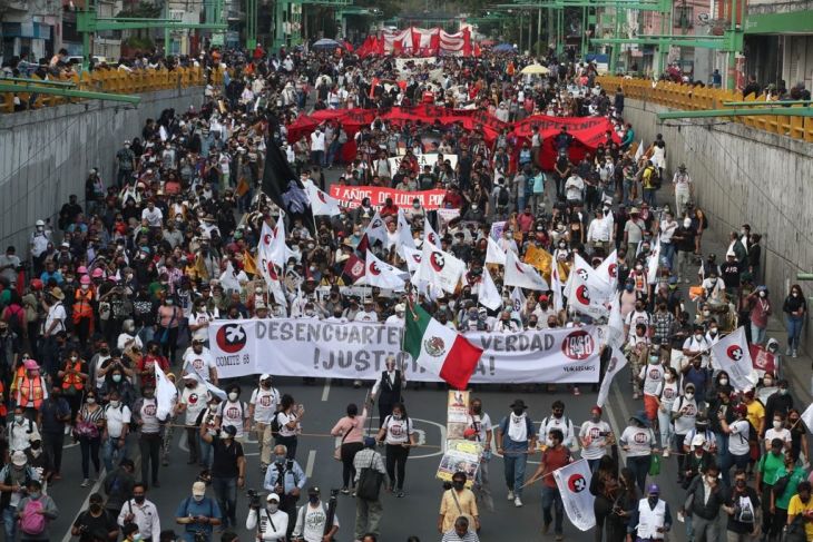 Más de 5 mil personas participan en la marcha conmemorativa del 53 aniversario de la matanza del 2 de octubre de 1968 en Tlatelolco, en medio de reclamos por la verdad y justicia de los hechos ocurridos hace más de medio siglo, pero también por los múltiples agravios que se viven en la actualidad.