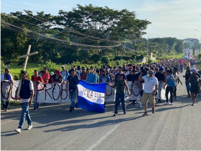 Encabezados por Irineo Mújica, director de Pueblos sin Fronteras y Luis García Villagrán, del Centro de Dignificación Humana, más de dos mil migrantes, centroamericanos principalmente, partieron en caravana la mañana de este sábado de Tapachula a la Ciudad de México, en protesta por la dilación en la entrega de documentos para que radiquen o transiten legalmente por el país.