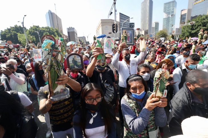 Los feligreses que entraron a la primera de 10 misas que se celebraron, acompañaron a los mariachis con Las Mañanitas, echaron porras al santo y bendijeron sus imágenes, rosarios, flores u oraciones que llevaban, olvidándose de la sana distancia.