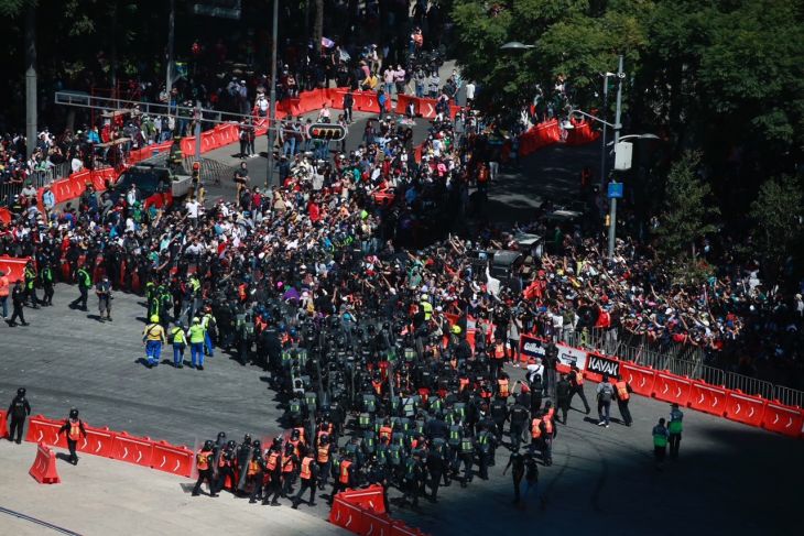 Durante varios minutos, el evento fue suspendido, mientras las inconformes fueron cercadas por elementos de la Secretaría de Seguridad Ciudadana capitalina.