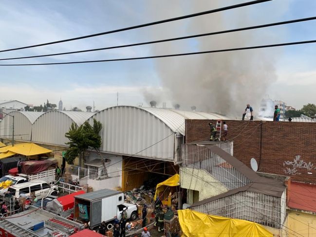 Un incendio se registró en el mercado de Sonora, en Venustiano Carranza, lo que movilizó a decenas de bomberos que atienden la conflagración en un área de cocinas y locales con artículos religiosos.