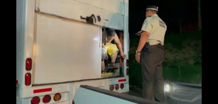“Los ocupantes descendieron e intentaron darse a la fuga, pero fueron detenidos por los elementos municipales, al tiempo que se escucharon gritos de auxilio provenientes del camión, por lo que los efectivos inspeccionaron la unidad en la que fueron localizadas 50 personas extranjeras que viajaban en condiciones de hacinamiento”, indicó el comunicado.