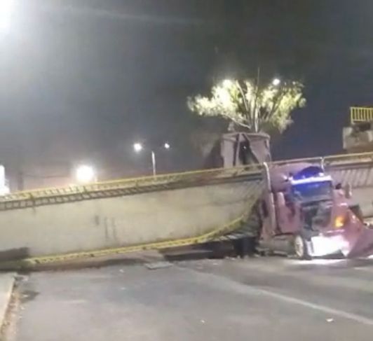 Un puente peatonal, ubicado sobre la carretera federal Los Reyes-Texcoco a la altura de poblado de Cuautlalpan, se desplomó luego de que un tráiler lo impactara, al intentar pasar cuando presuntamente excedía las dimensiones reglamentadas de carga.