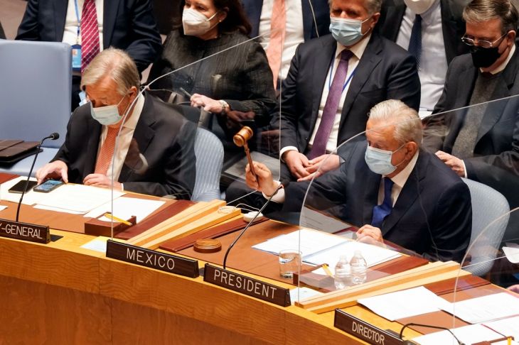 Al iniciar la presidencia temporal de México en el Consejo de Seguridad de la Organización de Naciones Unidas (ONU), Andrés Manuel López Obrador encabezó este martes 9 de noviembre la sesión general del organismo desde Nueva York, teniendo como orden del día el mantenimiento de la paz, exclusión, desigualdad y conflictos.