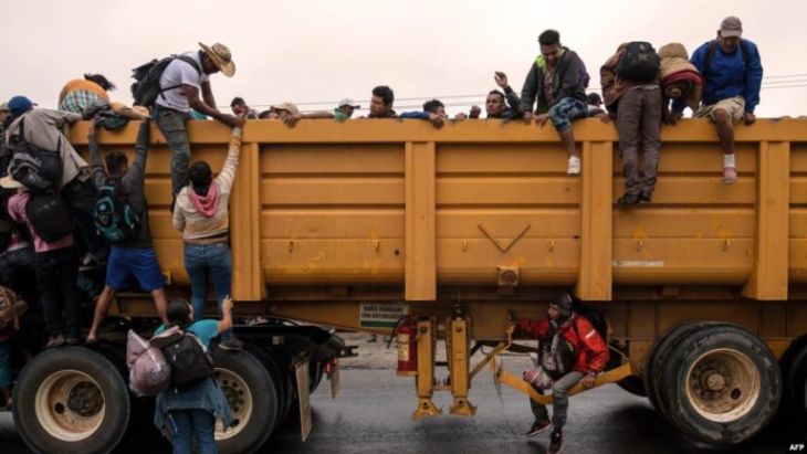 Cientos de personas de la caravana migrante que lleva 20 días recorriendo el sur de México decidieron este viernes subirse en camiones para completar la ruta del día, agotados tras largas jornadas de caminata.