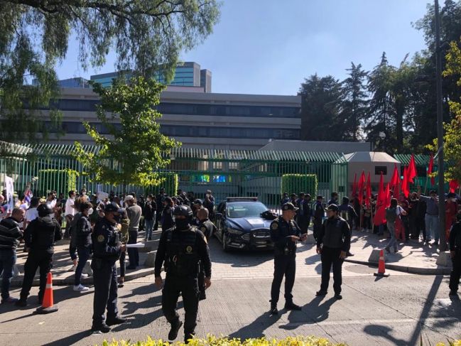 Ambos bandos, que sólo estuvieron separados por no más de seis metros y vallas formadas por los propios policías de la Ciudad de México, intercambiaron consignas. Hubo cierto grado de tensión con la llegada del segundo grupo opositor, que en redes sociales habían convocado a lanzar piedras contra la sede diplomática, la situación se quedó en gritos y consignas de uno y otro lado.