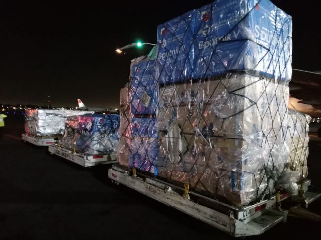 Este viernes arribó el tercer embarque del día con 900 mil vacunas envasadas Sputnik V contra Covid-19 del Centro Nacional de Investigación de Epidemiología y Microbiología Gamaleya.