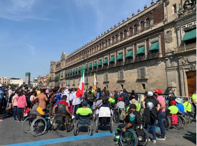 Agrupados en el colectivo Movimiento de Personas con Discapacidad, decenas de personas en sillas de ruedas, con muletas y a pie avanzan sobre Paseo de la Reforma con el lema principal "Orgullo y dignidad".