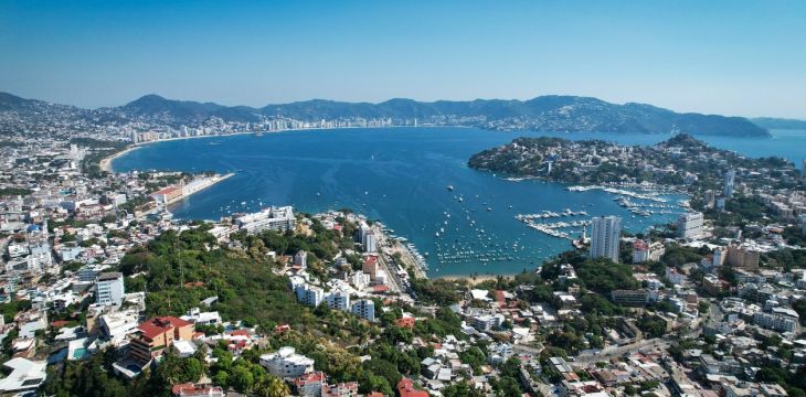 Con 8 kilómetros de color azul y dorado y situada entre dos montañas pertenecientes a la Sierra Madre Sur, la bahía se convirtió ya en el siglo XX en un referente turístico de México y del Pacífico.