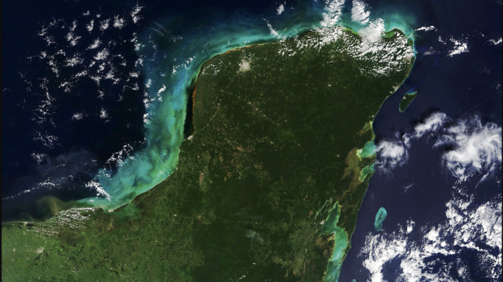Desde un observatorio de la Tierra, la NASA captura imágenes del planeta donde Campeche, Yucatán y Quintana Roo lucen rodeados de un color verde intenso que incrementa o disminuye dependiendo del movimiento de los sedimentos.