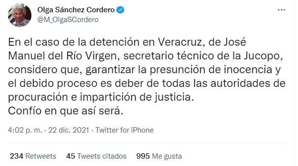 El Juez de Control Francisco Reyes Contreras dictó un año de prisión preventiva oficiosa José Manuel Del Río Virgen, secretario técnico de la Junta de Coordinación Política del Senado de la República, por su presunta participación en el delito de homicidio en contra de Remigio Tovar Tovar, candidato del partido Movimiento Ciudadano a la presidencia municipal de Cazones de Herrera, asesinado el 04 de junio del 2021.