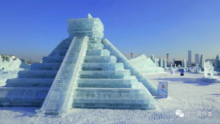 Para conmemorar 50 años de relaciones diplomáticas entre China y México, el país asiático rindió un homenaje durante el Festival Internacional de Nieve y Hielo de Harbin y presentó la pirámide de Chichén Itzá hecha con hielo.