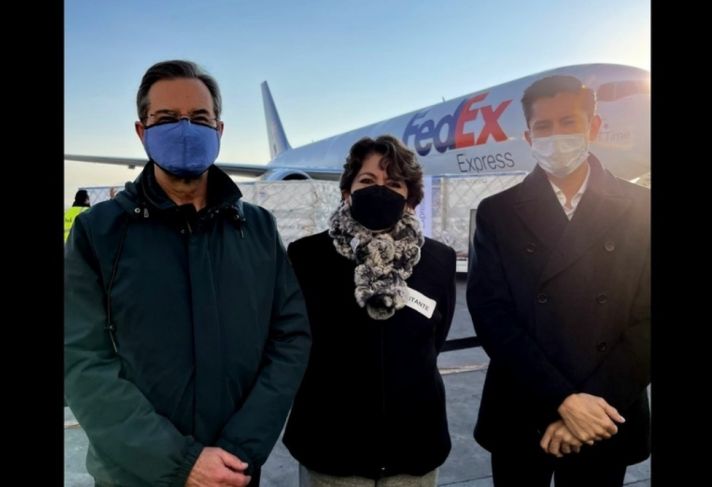 Este sábado arribó al Aeropuerto Internacional de Toluca un envío de 2.7 millones de vacunas anti Covid-19 donadas al gobierno de México por el laboratorio Moderna.