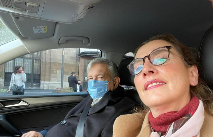 En una aparece dentro de una camioneta junto al presidente de la República, de regreso del Hospital Militar a Palacio Nacional y dos más con el mandatario, ya en el recinto oficial. !Seguimos!, concluyó el mensaje de Gutiérrez Müller.