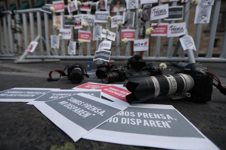 Sobre las vallas de protección que rodean el sitio fueron colocadas fotografías de los tres, así como carteles en los que se denunció las agresiones a periodistas en el país y letreros que indicaban “somos prensa, no disparen”.