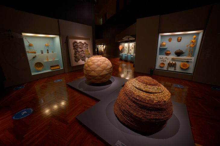 La muestra se integra de seis núcleos temáticos a partir de 589 colecciones procedentes de los institutos nacionales de Bellas Artes y Literatura, de Antropología e Historia, de los Pueblos Indígenas, así como de museos estatales, regionales y colecciones privadas.