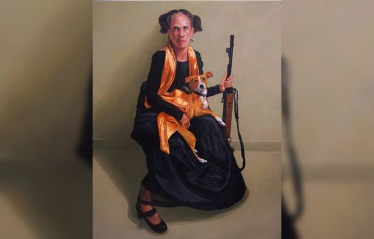 “En coordinación con la que me maneja en Monterrey, me hicieron la invitación ahora que es la semana de MACO, de la feria de arte, aquí en la Ciudad de México. En esta exhibición hay 11 piezas de mediano y pequeño formato; por ejemplo está Cuéntale al diablo que Dios es bueno; es un retrato de mi esposa donde hay un par de elementos que invitan como a reflexionar sobre qué situación está viviendo la persona representada en el retrato. También hay uno que me hice, un poco lúdico, con mis hijos jugando en la alberca, pero con una cosa absurda: tengo una cubeta en la cabeza.”