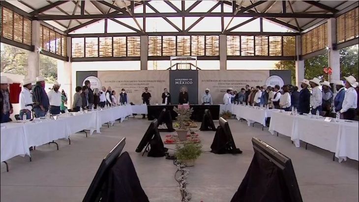 Ahí reunido con gobernadores tradicionales de Loma de Guamúchil, Loma de Bácum, Tórim, Vicam (la capital), Pótam, Ráhum, Huirivis y Belem, López Obrador celebró el avance del Plan de Justicia para los pueblos yaquis.