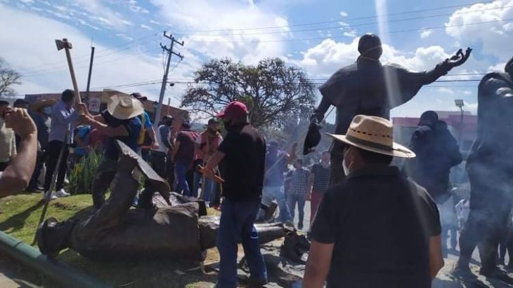 Con el derribo de las efigies, dijo el CSIM en un comunicado, se conmemoró este lunes “el aniversario luctuoso de Tangáxoan Tzíntzicha, el último cazonci o irecha (gobernante del Estado purépecha), quien fue detenido, humillado, torturado y quemado vivo por el presidente de la Real Audiencia de la Nueva España, Nuño de Guzmán, el 14 de febrero de 1530”.