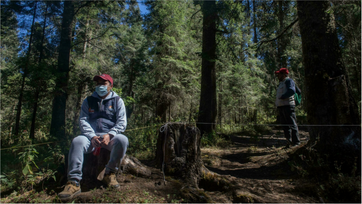 Estos centinelas, algunos armados con machetes, caminan hasta 20 kilómetros diarios día y noche cuidando que el ganado no se coma los oyameles y pinos recién plantados, y protegiéndolos de incendios y de los depredadores del bosque, a menudo vinculados con grupos criminales.